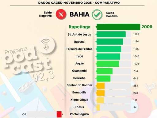 O município de Itapetinga vive um momento histórico em 2025. Até o mês de outubro, a cidade alcançou um saldo