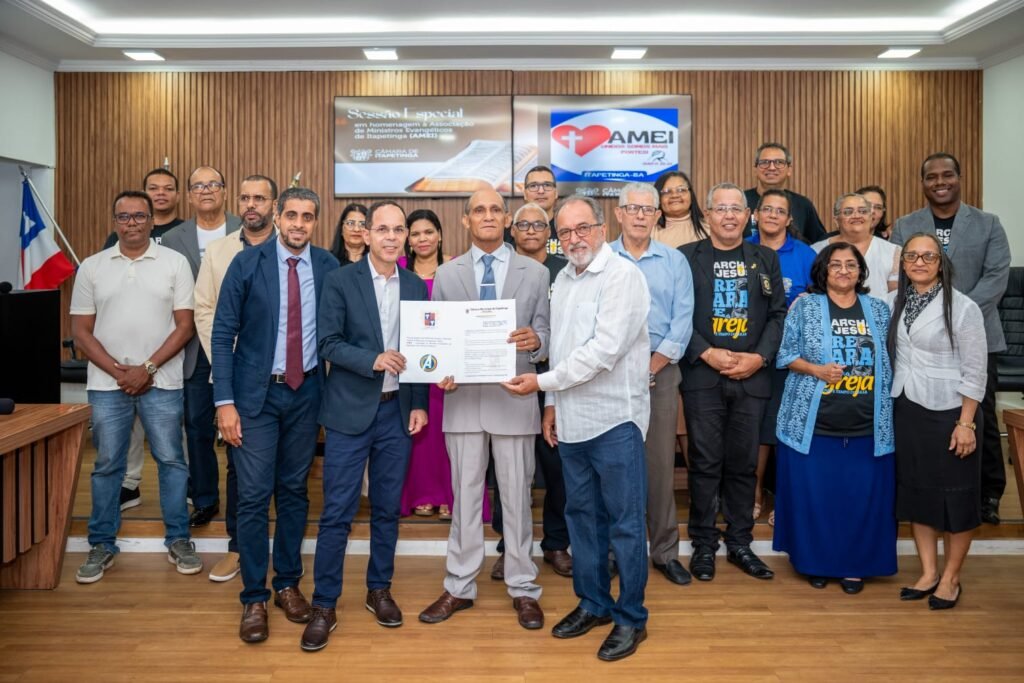 A Câmara Municipal de Itapetinga realizou, nesta quarta-feira (10), uma Sessão Especial em homenagem aos 25 anos da Associação de Ministros Evangélicos de Itapetinga (AMEI). O evento destacou a importância da entidade para o município e reforçou o compromisso do prefeito Eduardo Hagge com o diálogo e a parceria com o segmento evangélico.